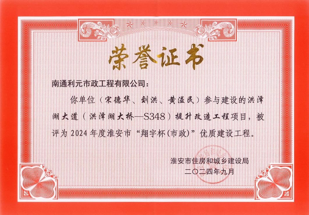 2024年度淮安市“翔宇杯(市政)”优质建设工程