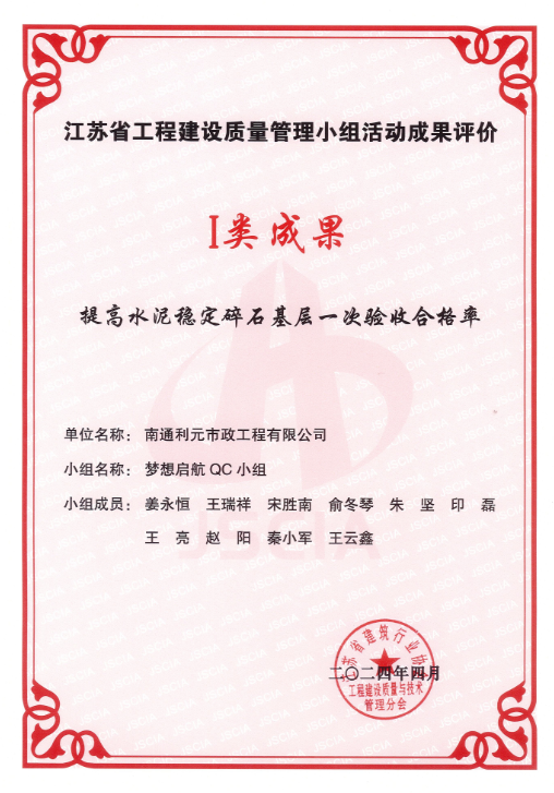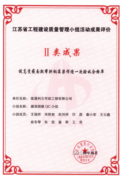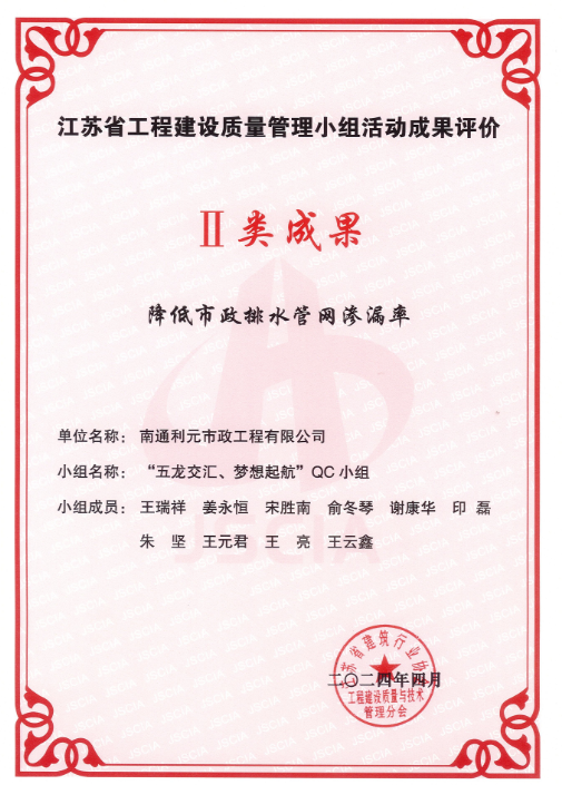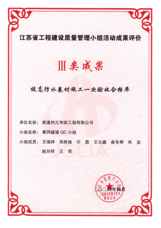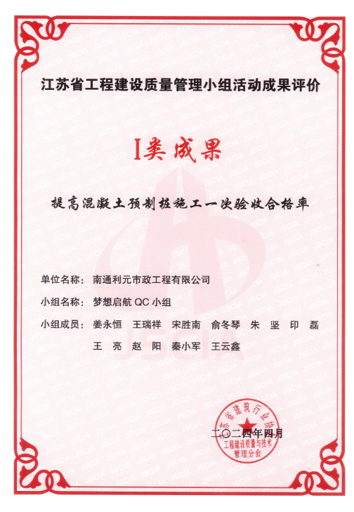 2024年度江苏省工程建设质量管理小组活动成功评价