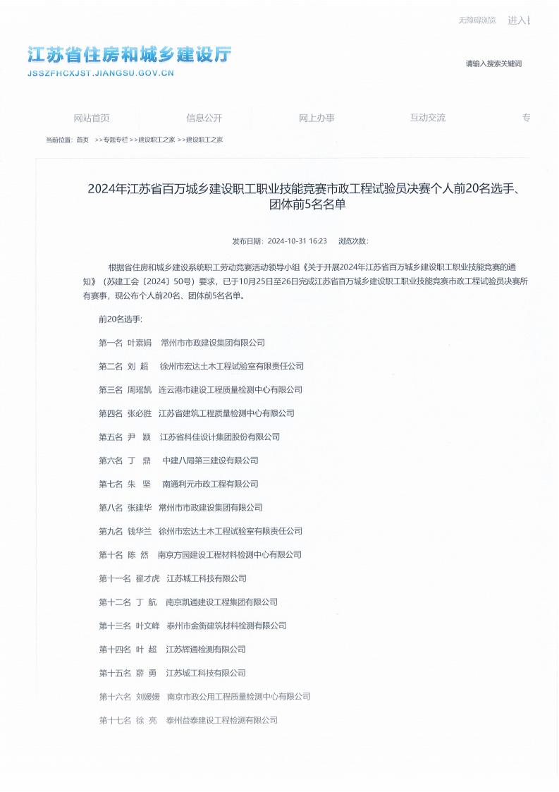 2024年江苏省百万城乡建设职工职业技能竞赛市政工程试验员决赛