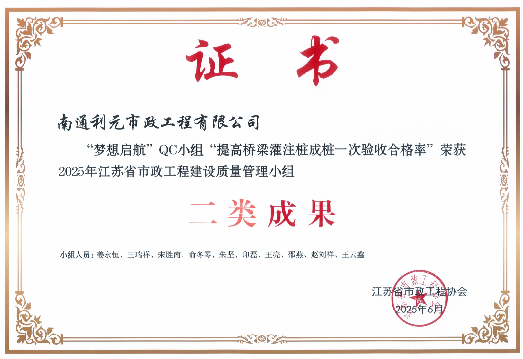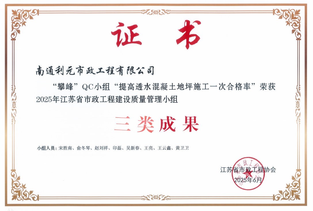 2025年江苏省市政工程建设质量管理小组活动成果